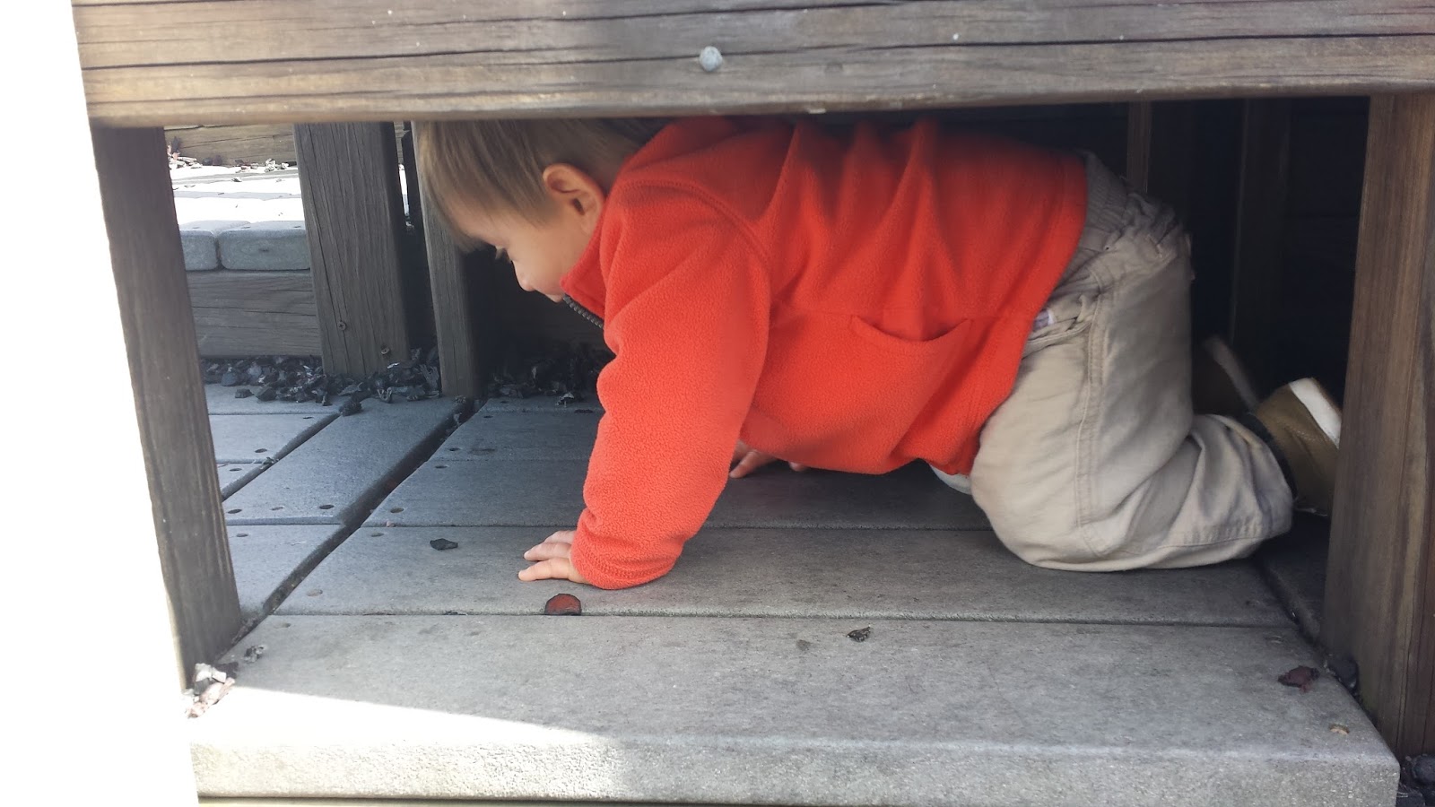 | Seriously, how is any adult suppose to fit into that space if their child gets stuck? I am not sure but Elisha loved crawling in the tunnels. |